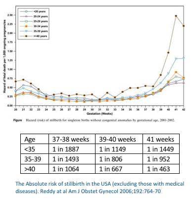 risk of stillbirth as you have a higher risk of this as pregnancy continues.