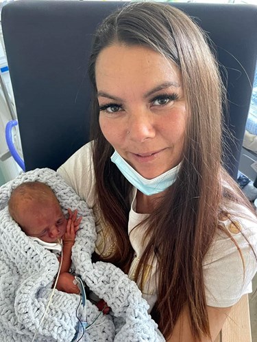Photo: Mum Hayley Burgess with Charlie, one of the twins born nine weeks early.